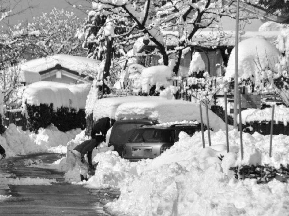 Then I hear the snowplow. I rush outside: the road is now cleared, but my car has disappeared behind a 1.5-meter-high glacier. I stare helplessly at the ice surrounding it. Then the sun comes out, the sky turns blue, and I’m standing here with a dustpan in front of snow that is now becoming lead-heavy.